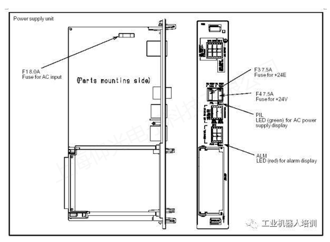 維修: 如果 LED指示燈沒亮可能是PSU的200V供電電源沒有或PSU上的F1保險絲毀壞: