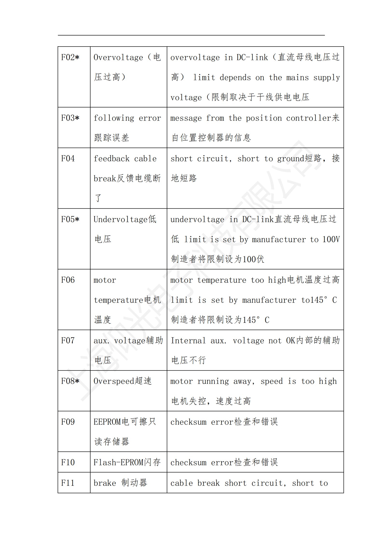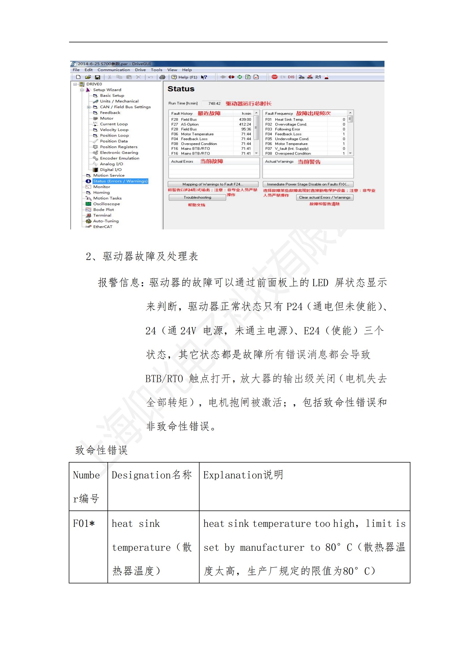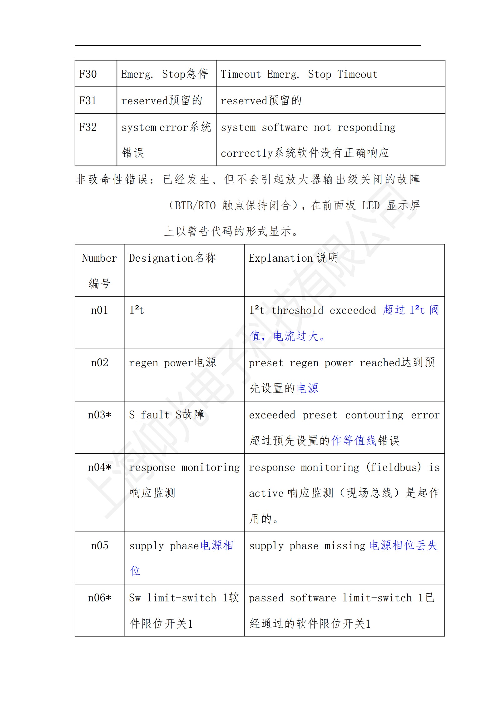 科爾摩根S700系列驅(qū)動器操作使用說明書,科爾摩根S700系列驅(qū)動器報(bào)警故障代碼解釋: