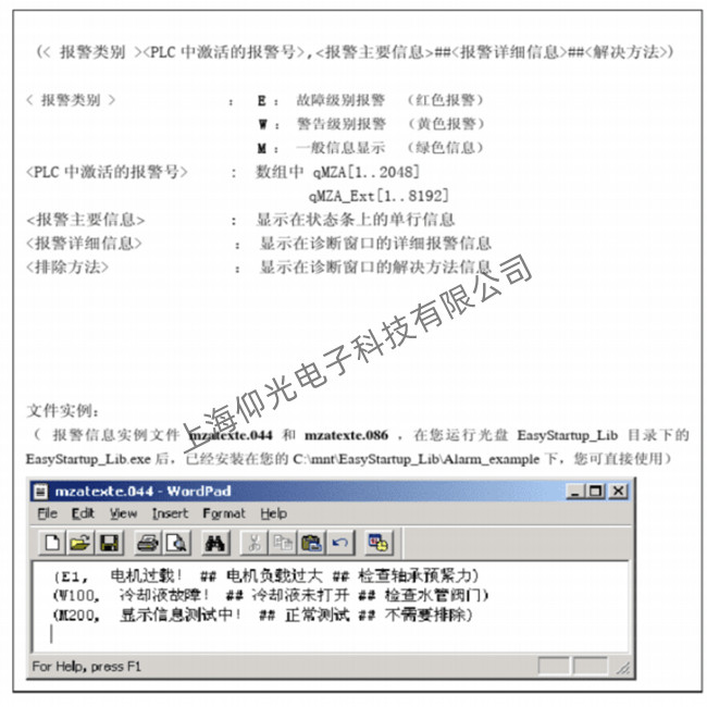 (報警信息實例文件mzatexte.044和mzatexte.086,在您運行光盤EasyStartupLib目錄下的 EasyStartup_Lib.exe后,已經安裝在您的C:mntEasyStartupLibAlarm_example下,您可直接使用)